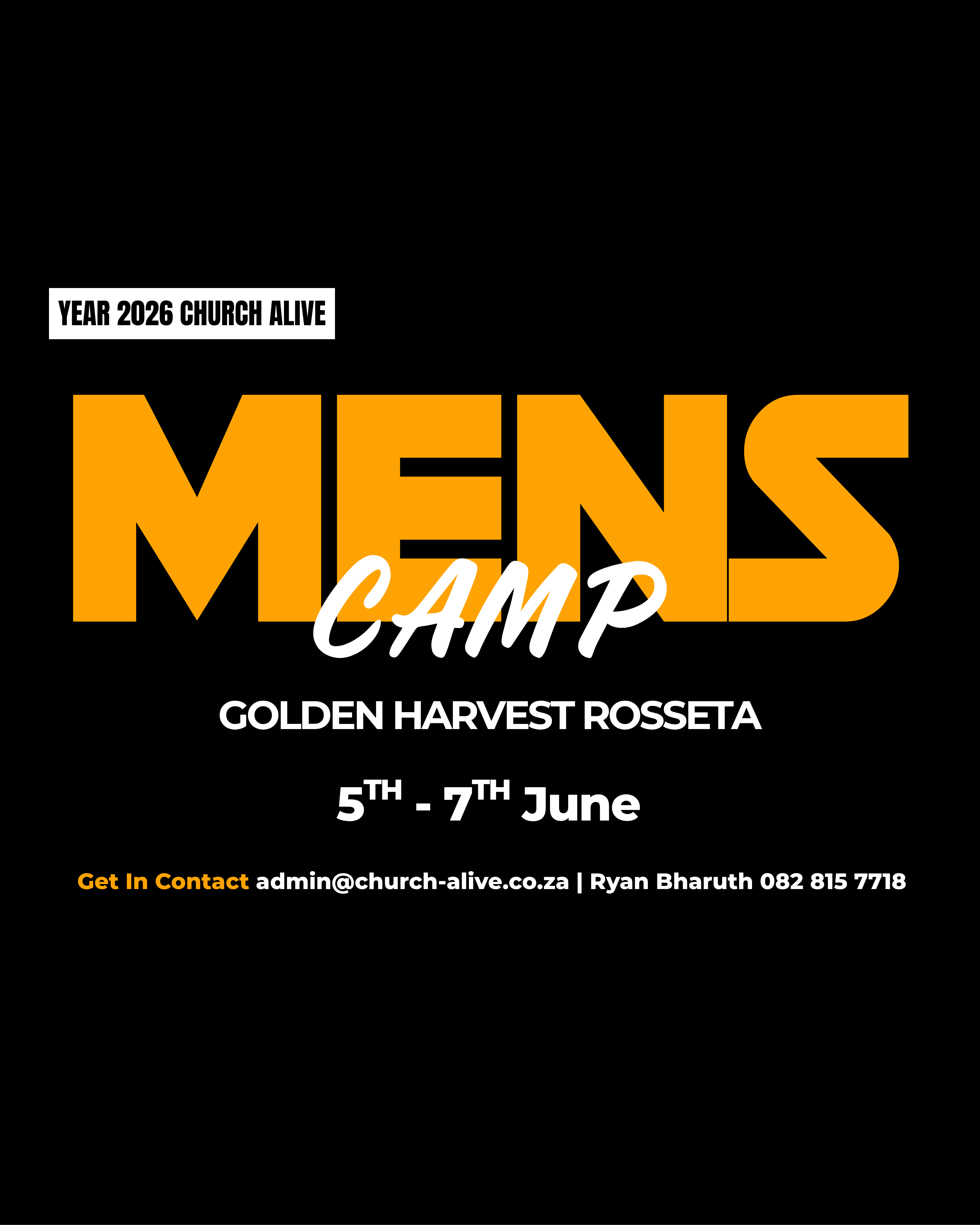 Get ready to experience a powerful weekend set apart for men to gather, grow, and be strengthened together. It’s a time to step away from distractions, pursue Jesus, and build real brotherhood that sharpens, restores, and equips.